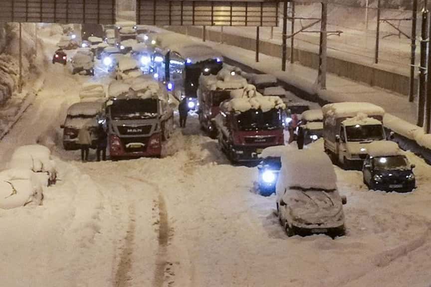 - 2) Σε κόμβους όπου ο δρόμος έχει πρόβλημα λόγω παγετού, η τροχαία σταματάει τα οχήματα, κάνει έλεγχο και όποιοι δεν φοράνε χειμερινά λάστιχα ή αλυσίδες, εκτός από το πρόστιμο τους αναστρέφει και τους γυρίζει πίσω από εκεί που ήλθαν.