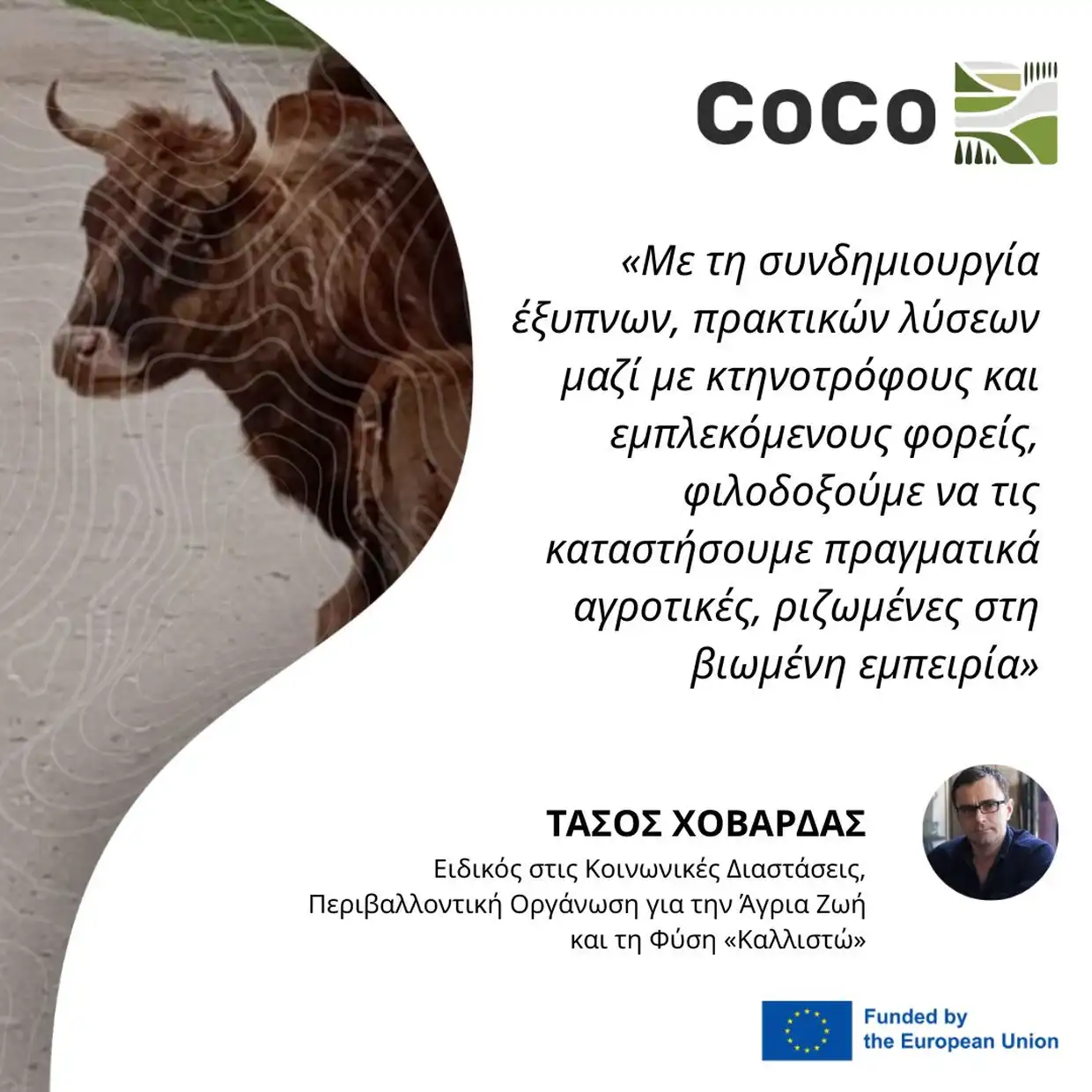 Καθώς η ευρωπαϊκή ύπαιθρος αντιμετωπίζει ολοένα και μεγαλύτερες προκλήσεις – από τη μείωση του αγροτικού πληθυσμού μέχρι τις επιπτώσεις της κλιματικής αλλαγής – το έργο CoCo εργάζεται στην «καρδιά» αυτών των κοινοτήτων για τη συν-δημιουργία βιώσιμων λύσεων που προάγουν τη συνύπαρξη ανθρώπων και μεγάλων σαρκοφάγων.