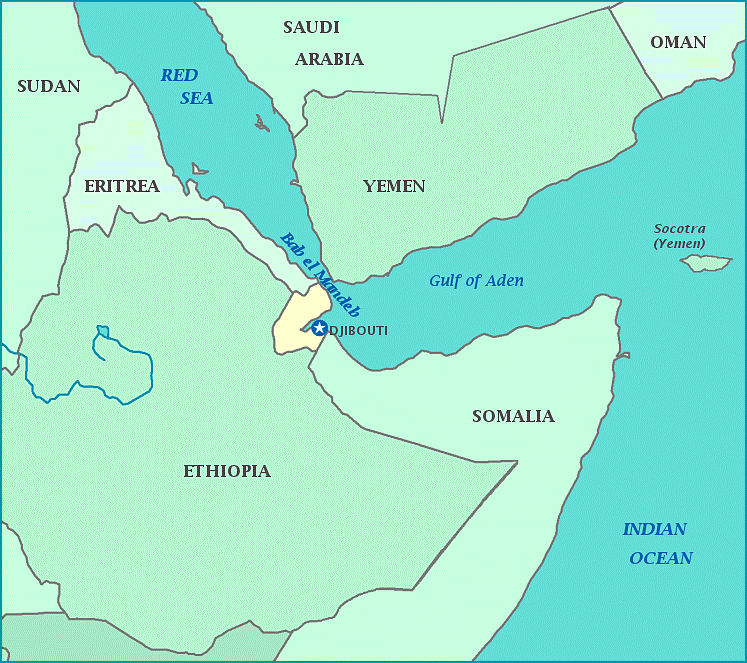Η ‘‘heartland’’, η ‘‘rimland’’ και η Φιλοδοξία Κίνας και Ρωσίας για Παγκόσμια Επικράτηση 7ος Χάρτης: Το Τζιμπουτί, η Ερυθραία και το Σουδάν είναι χώρες-κλειδιά για τις ροές στον Κόλπο του Άντεν και στην Ερυθρά Θάλασσα μέχρι το Σουέζ, μέσω του οποίου συνδέονται η Μεσόγειος με τον Ινδικό Ωκεανό.