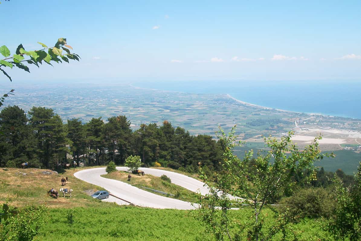 Στην επιστροφή φαγητό ή καφές στην ταβέρνα του καταφυγίου με πανοραμική θέα τον κάμπο, τον Όλυμπο και το Αιγαίο Πέλαγος μέχρι απέναντι τη Χαλκιδική (φασουλάδα, γίδα βραστή κλπ.).