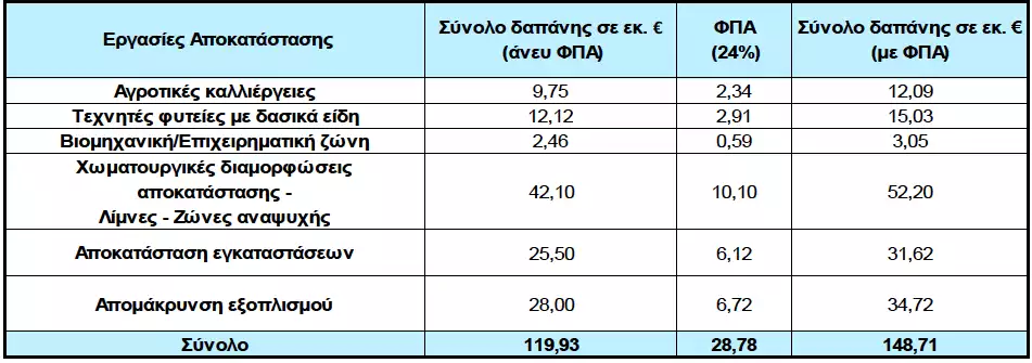 2. Το κόστος της αποκατάστασης προϋπολογίζεται για την περίοδο 2021 – 2032 120 εκ. € (πλέον Φ.Π.Α.). Ενημερωτικά για τα ορυχεία Λακκιάς – Φιλώτα το κόστος αποκατάστασης υπολογίζεται σε 17,7 εκ € (πλέον Φ.Π.Α).