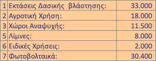 1. Οι χρήσεις για τις οποίες προορίζονται τα νέα εδάφη είναι περίπου οι εξής (σε στρέμματα):
