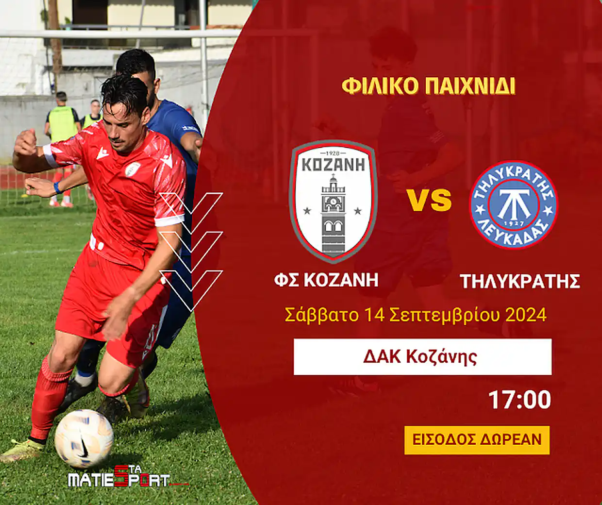 Φιλικός αγώνας προετοιμασίας θα πραγματοποιηθεί στο ΔΑΚ Κοζάνης, το Σάββατο 14 Σεπτεμβρίου, μεταξύ της Κοζάνης και του Τηλυκράτη Λευκάδας.