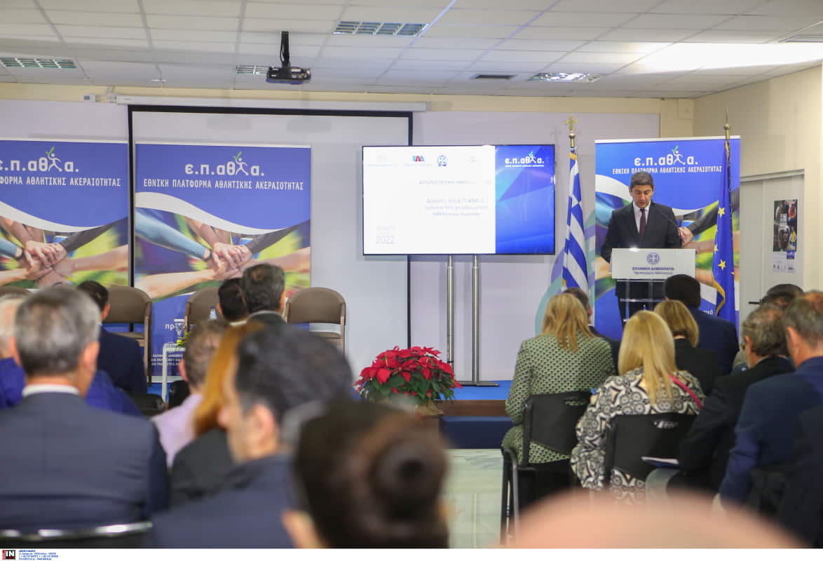 Ο απολογισμός των δράσεων της Εθνικής Πλατφόρμας Αθλητικής Ακεραιότητας (Ε.Π.ΑΘΛ.Α.) για το 2022, οι στοχεύσεις της με ακόμα περισσότερα «εργαλεία» και πρωτοβουλίες για το 2023, καθώς και ο κομβικός ρόλος του αθλητικού κινήματος στον αγώνα ενάντια στη χειραγώγηση των αγώνων, παρουσιάστηκε σε εκδήλωση που διοργάνωσε στο ΟΑΚΑ το Υφυπουργείο Αθλητισμού, με τη συμμετοχή σημαντικών παραγόντων του αθλητικού χώρου και εκπροσώπων φορέων που εμπλέκονται στη μεγάλη αυτή προσπάθεια.