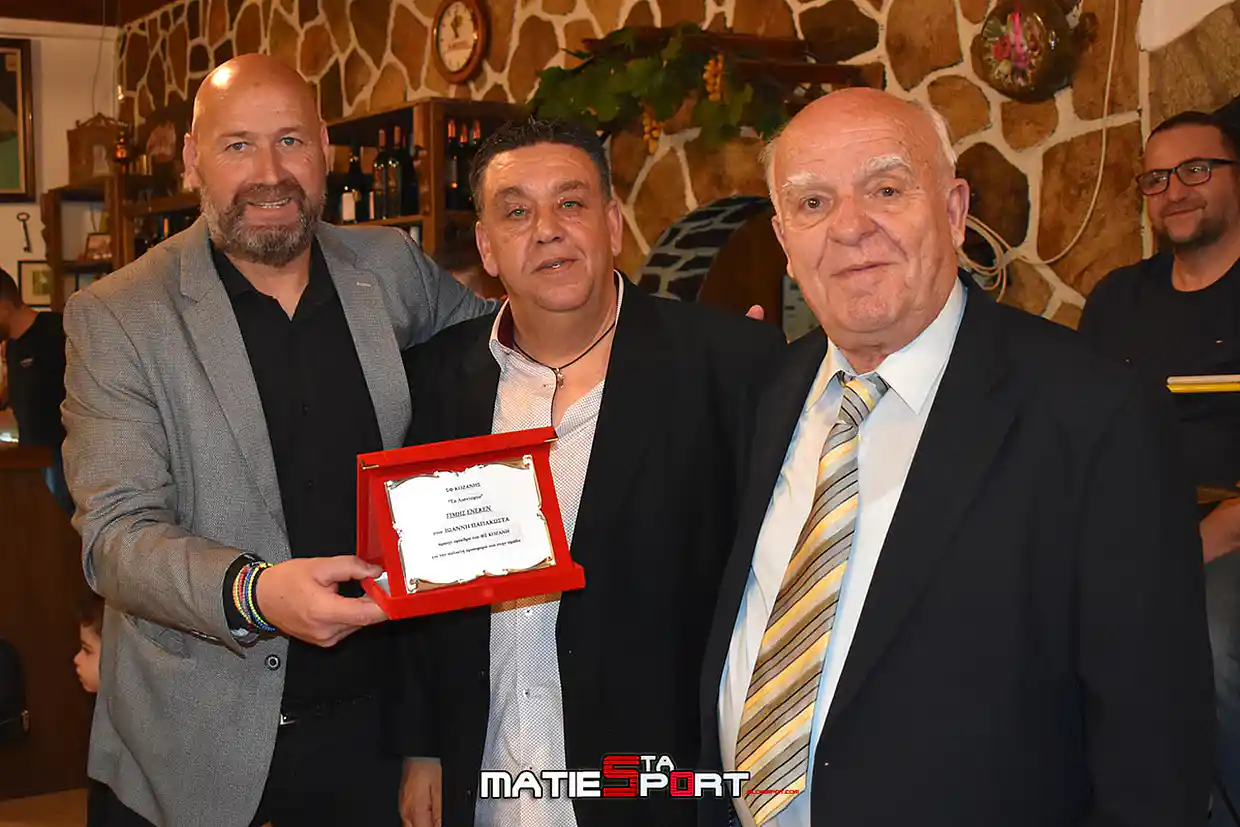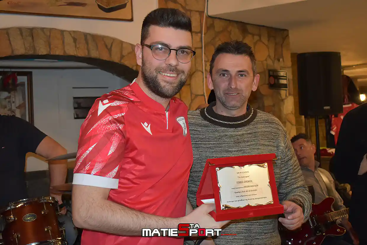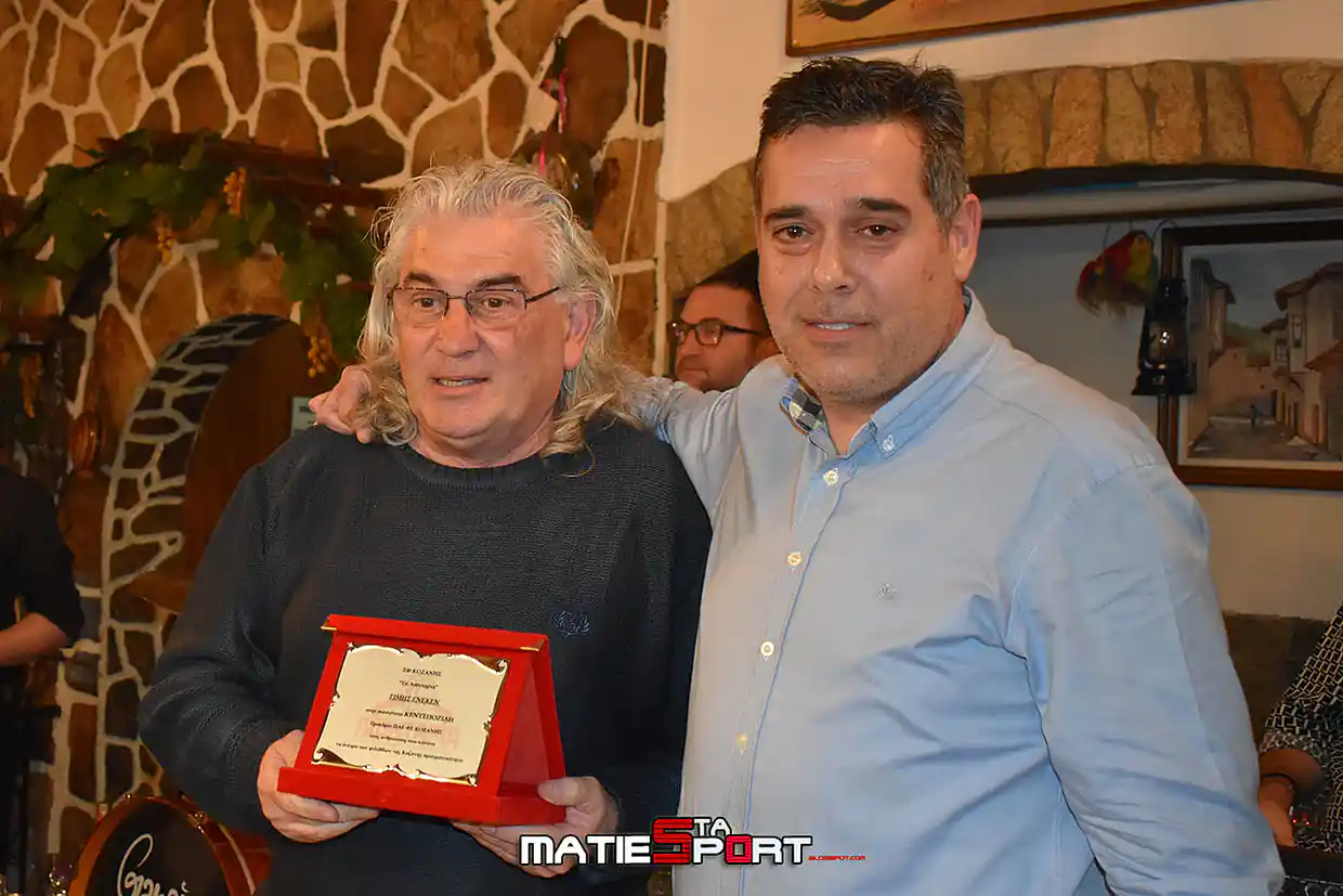 Τέλος βραβεύτηκε και ένας από τους παλαιότερους φιλάθλους της Κοζάνης που ακολουθεί την ομάδα πιστά πολλά χρόνια ο κ. Παντελής Ζήκος. Την αναμνηστική πλακέτα απένειμε ο πρώην αντιδήμαρχος και φίλαθλος της Κοζάνης κ. Μίλτος Μαγγιρίδης.