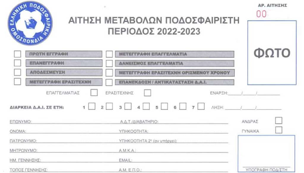 -Επανεκδόσεις ΔΑΙ ποδοσφαιριστών που ήδη ανήκουν στην δύναμη ενός ερασιτεχνικού σωματείου ανοικτές όλη την ποδοσφαιρική σεζόν από 01.07.2022 έως και 30.06.2023