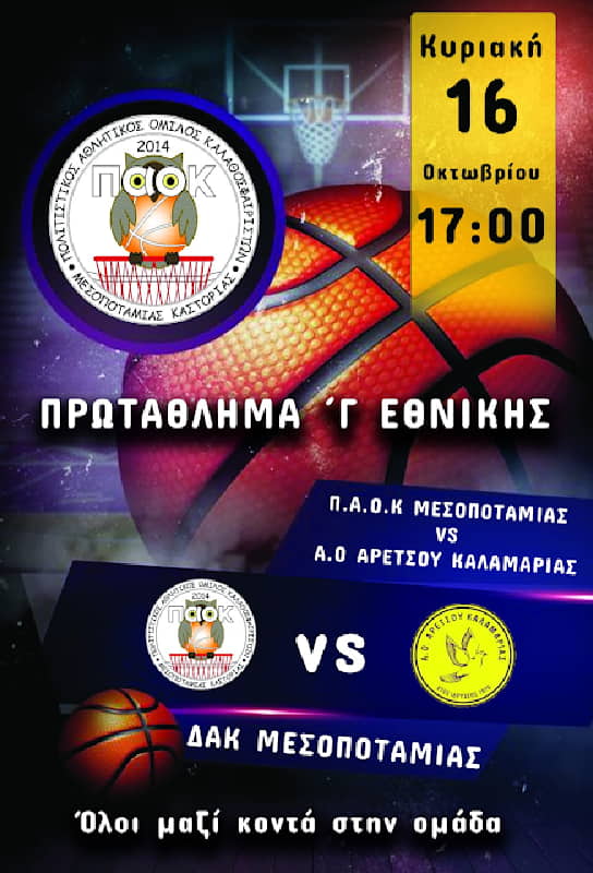 Η προσπάθεια στα παρκέ της Γ’ Εθνικής ξεκίνησε την προηγούμενη Κυριακή και συνεχίζεται, με την οικογένεια του ΠΑΟΚ Μεσοποταμίας να καλεί όλο το φίλαθλο κοινό να παρευρεθεί στο ΔΑΚ Μεσοποταμίας και να ωθήσει την ομάδα μας στην πρώτη της νίκη για φέτος!