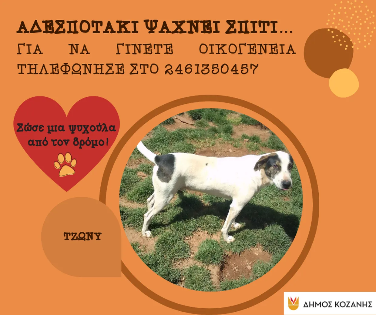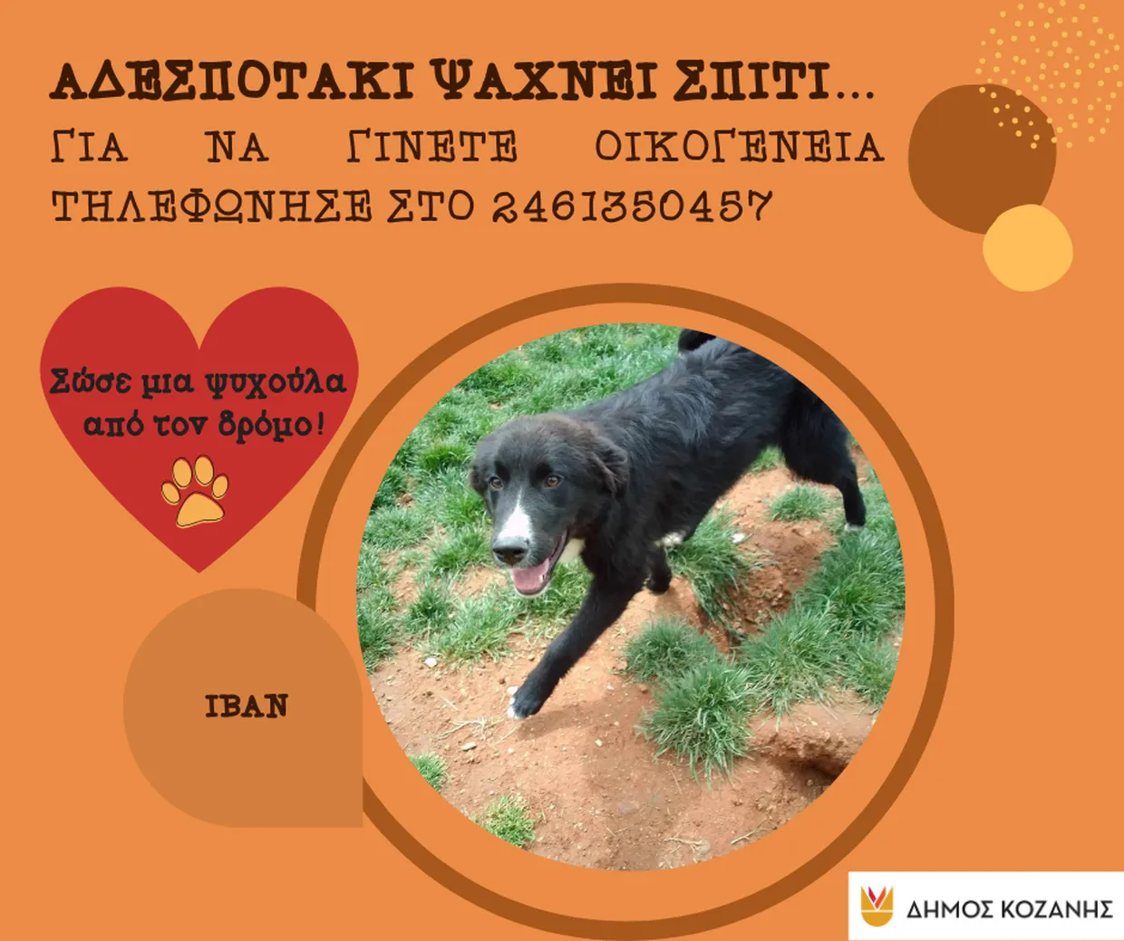 Ο Δήμος Κοζάνης απευθύνει κάλεσμα σε όσες και όσους επιθυμούν να υιοθετήσουν ένα αδέσποτο ζώο συντροφιάς, προκειμένου να του προσφέρουν ένα ζεστό σπιτικό με πολλή αγάπη.