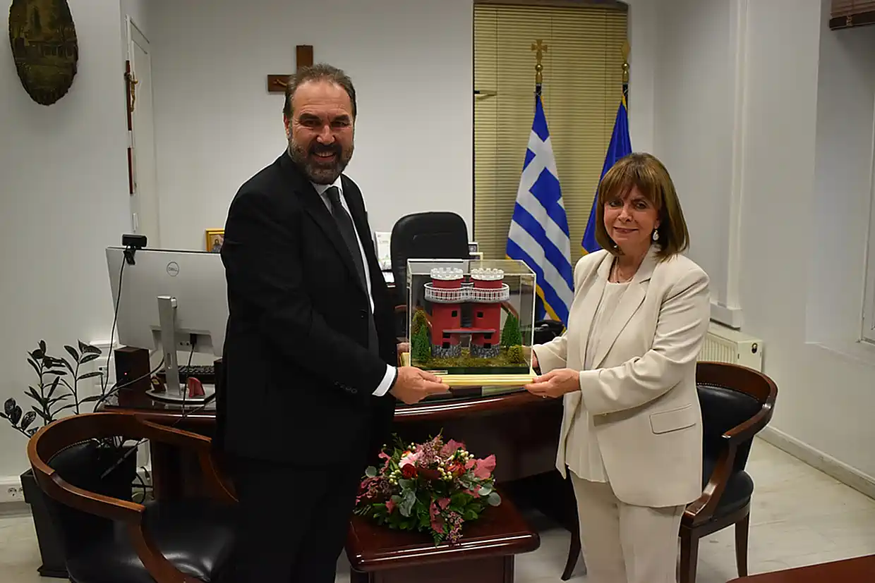 Νωρίτερα, η Πρόεδρος της Δημοκρατίας συναντήθηκε με τον Δήμαρχο Φλώρινας Βασίλη Γιαννάκη στο Δημαρχείο της πόλης.