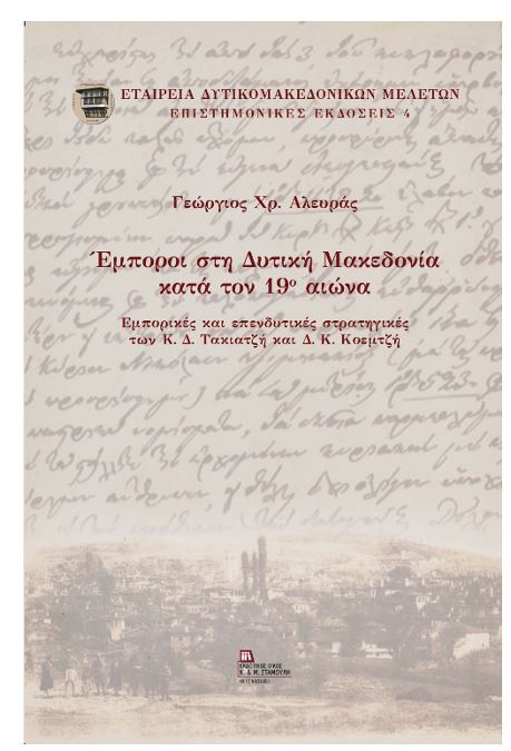 Η Εταιρεία Δυτικομακεδονικών Μελετών (Ε.ΔΥΜ.ΜΕ.) με χαρά ανακοινώνει την έκδοση: Γ. Χρ. Αλευράς, Έμποροι στη Δυτική Μακεδονία κατά τον 19ο αιώνα: Εμπορικές και επενδυτικές στρατηγικές του Κ. Δ. Τακιατζή και Δ. Κ. Κοεμτζή, [Εταιρεία Δυτικομακεδονικών Μελετών, Επιστημονικές Εκδόσεις 4], εκδ. Σταμούλη, Θεσσαλονίκη 2021. Η εργασία αποτελεί τη διδακτορική διατριβή του συγγραφέα στο Πανεπιστήμιο Ιωαννίνων, Τμήμα Ιστορίας και Αρχαιολογίας, με επιβλέποντα τον καθηγητή κ. Γεώργιο Νικολάου. Ο συγγραφέας χρησιμοποίησε το πλούσιο και ανέκδοτο έως τώρα αρχείο των οικογενειών Τακιατζή και Κοεμτζή, που σώζεται στην Κοβεντάρειο Βιβλιοθήκη Κοζάνης. Σημειωτέον ότι το βιβλίο προλογίζει η κ. Άννα Διαμαντοπούλου. Η έκδοση έγινε από τις Εκδόσεις Σταμούλη (Θεσσαλονίκη), όπου και η κεντρική διάθεση του βιβλίου.
