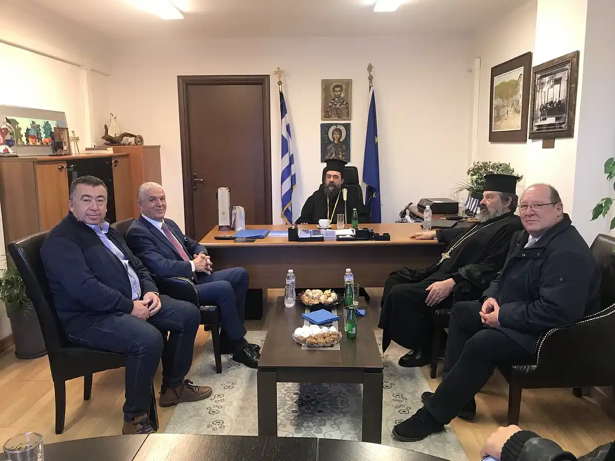 Ο Σεβασμιότατος ευχήθηκε στον Δήμαρχο, τα στελέχη της νέας Δημοτικής Αρχής και σε όλο το προσωπικό του Δήμου μία ευλογημένη και δημιουργική χρονιά. Ο Δήμαρχος ευχαρίστησε τον Σεβασμιότατο για τη συμβολική του επίσκεψη στην απαρχή της νέας χρονιάς, τονίζοντας τη σπουδαιότητα της συνεργασίας Εκκλησίας – Δήμου στην παραγωγή κοινωνικού έργου.