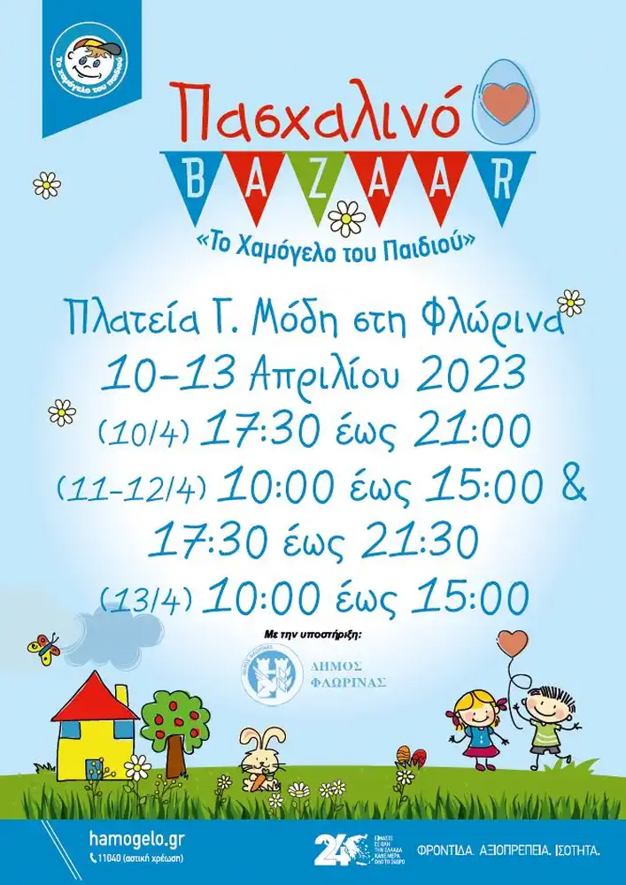Με το μήνυμα «Μία λαμπάδα… ένα Χαμόγελο», «Το Χαμόγελο του Παιδιού» σας προσκαλεί στο Πασχαλινό Bazaar που διοργανώνει στην Πλατεία Γ. Μόδη Φλώρινας, από τη Μ. Δευτέρα 10/4 έως και την Μ. Πέμπτη 13/4, με ωράριο λειτουργίας: