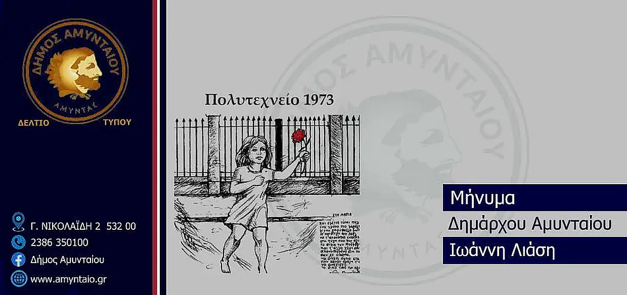 Μήνυμα Δημάρχου Αμυνταίου για την Επέτειο του Πολυτεχνείου