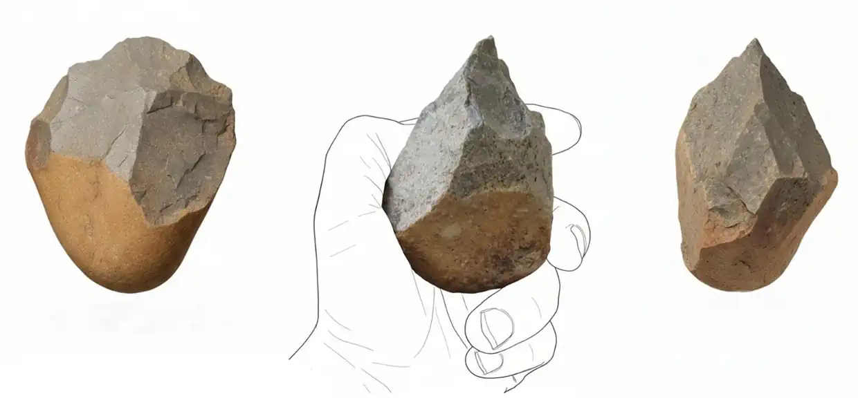 Η αρχαιολογική σκαπάνη έφερε στο φως 3.000 λίθινα τέχνεργα που χρησιμοποιούσε ο προϊστορικός άνθρωπος κι ανάμεσά τους έναν χειροπέλεκυ που χρονολογείται ίσως ως και 900.000 χρόνια από σήμερα και αποτελεί σπάνιο και κομβικό εύρημα για τον ελλαδικό χώρο.