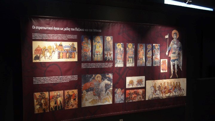 Πρόκειται για απεικονίσεις στρατιωτικών αγίων στην τέχνη της μέσης και ύστερης βυζαντινής περιόδου (11ος -15ος αι.), προερχόμενες κυρίως από τοιχογραφικά σύνολα ναών της Καστοριάς αλλά και πόλεων της Κεντρικής Μακεδονίας.