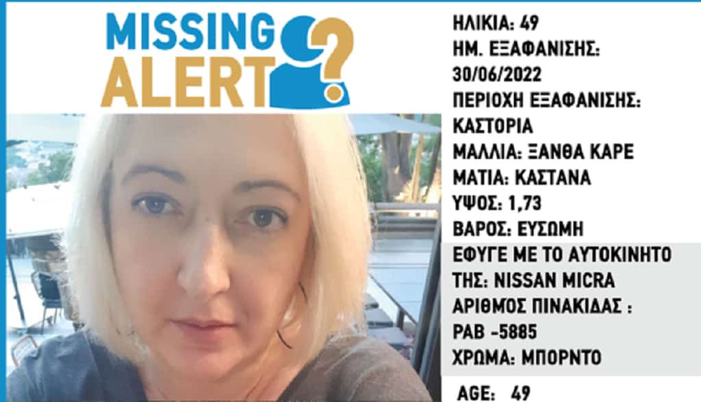 Στις 30/06/22, εξαφανίστηκε από την περιοχή της Καστοριάς, η Δήμητρα Ιωάννου, 49 ετών. Το «Χαμόγελο του Παιδιού» προχώρησε στη δημοσιοποίηση των στοιχείων της ενήλικης κατόπιν αιτήματος της οικογένειάς της, καθώς ενδέχεται να συντρέχουν λόγοι οι οποίοι θέτουν τη ζωή της σε άμεσο κίνδυνο.
