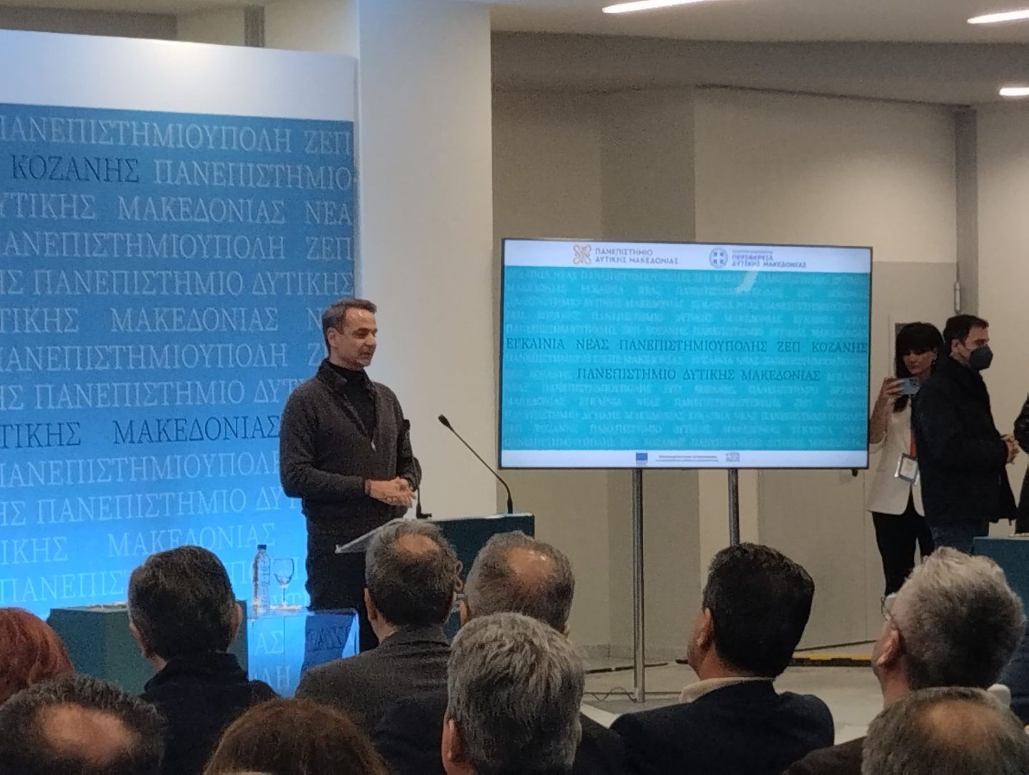 Στον χαιρετισμό του ο κ. Μητσοτακης είπε: “Είναι μια σπουδαία μέρα σήμερα για τη Δυτική Μακεδονία. Είμαι πράγματι εντυπωσιασμένος από αυτό το έργο. Ένα υπερσύγχρονο κτήριο. Πλέον το πανεπιστήμιο Δ.Μ. είναι ένα από τα πιο δυναμικά της πατρίδας μας. Και αυτό δεν είναι σχήμα λόγου. Είναι σημαντικό να επενδύσουμε στο πανεπιστήμιο. Εδώ βλέπω πως γίνεται μια σπουδαία δουλειά”.