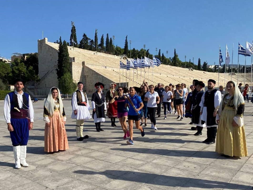 Η Πρόεδρος της Επιτροπής Αθλητισμού και Περιβάλλοντος της Ελληνικής Ολυμπιακής Επιτροπής, κα Αλεξάνδρα Πάλλη, μαζί με τα μέλη της Επιτροπής Νίκο Ιατρού και Νίκο Ξυλούρη, Οlympian κολύμβησης, την Πρόεδρο του Συλλόγου Ελλήνων Ολυμπιονικών Βούλα Ζυγούρη, την Παραολυμπιονίκη της κολύμβησης Ευθυμία Γκουλή, την Υφυπουργό Εργασίας και Κοινωνικών Υποθέσεων κα Δόμνα Μιχαηλίδου, τον εκπρόσωπο της Πρεσβείας του Ηνωμένου Βασιλείου Daniel Hong, τη Γκλόρια Πριβιλέτζιο, Μαραθωνοδρόμο, την Πρωταθλήτρια ρυθμικής γυμναστικής Μαρία Παγκάλου, την αλπινίστρια Βανέσα Αρχοντίδου, το Λύκειο Ελληνίδων και άλλους φορείς, υποδέχτηκαν τη σκυτάλη στο Παναθηναϊκό Στάδιο, και τη μετέφεραν ως την Ακρόπολη.