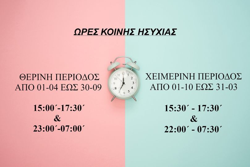 Από την 01 Οκτωβρίου 2022 αρχίζει η χειμερινή περίοδος για τις ώρες κοινής ησυχίας.