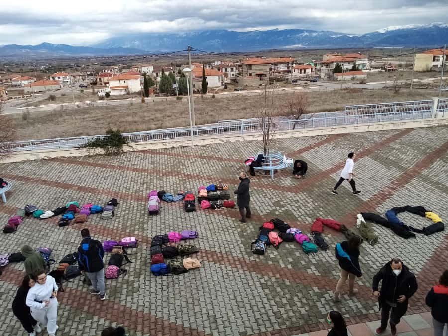 Οι μαθητές του Καλλιτεχνικού Σχολείου Κοζάνης τη Δευτέρα, πριν από τη λήξη των μαθημάτων, οργάνωσαν δράση για τον αδικοχαμένο Άλκη, “γράφοντας” στο προαύλιο με τις τσάντες τους και τα μπουφάν τους “Μη με χτυπάτε άλλο” και φωνάζοντας ” Όχι στη βία”.