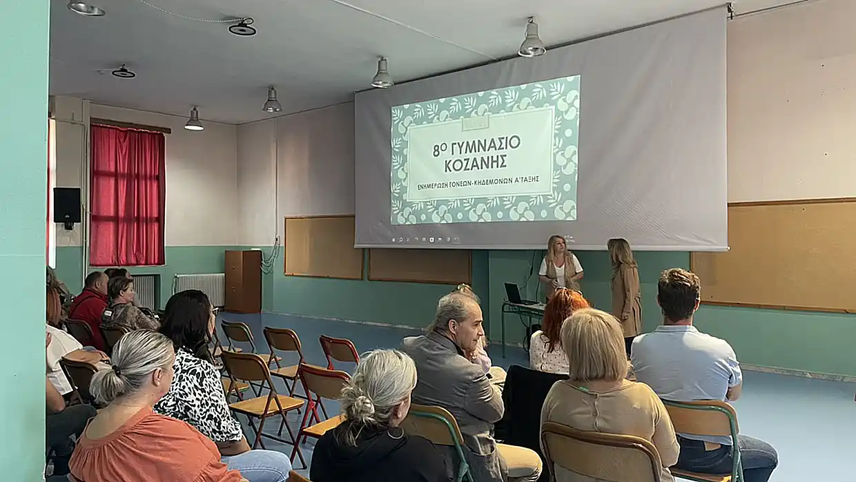 Τη Δευτέρα 23/09, πραγματοποιήθηκε στην αίθουσα εκδηλώσεων του σχολείου ενημέρωση των γονέων & κηδεμόνων των μαθητών/τριών της Α΄ Γυμνάσιου από τη Διευθύντρια κα Ευαγγελία Κουσκουλή, και τον Σύλλογο Διδασκόντων/ουσών του 8ου Γυμνασίου Κοζάνης.