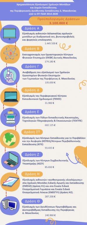 Με την παράδοση του εξοπλισμού οι σχολικές μονάδες και οι εκπαιδευτικές και διοικητικές δομές της Περιφερειακής Διεύθυνσης Εκπαίδευσης Δυτικής Μακεδονίας θα έχουν καλυμμένες τις ανάγκες τους σε εργαστηριακό και τεχνολογικό εξοπλισμό, γεγονός που εξασφαλίζει την ποιοτική αναβάθμιση της παρεχόμενης εκπαίδευσης στους μαθητές της Δυτικής Μακεδονίας και την ουσιαστική υποστήριξη του έργου των εκπαιδευτικών μας.