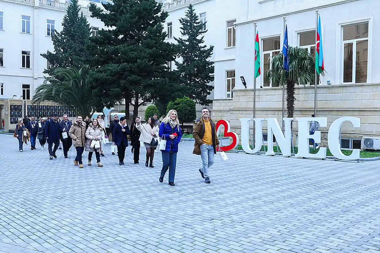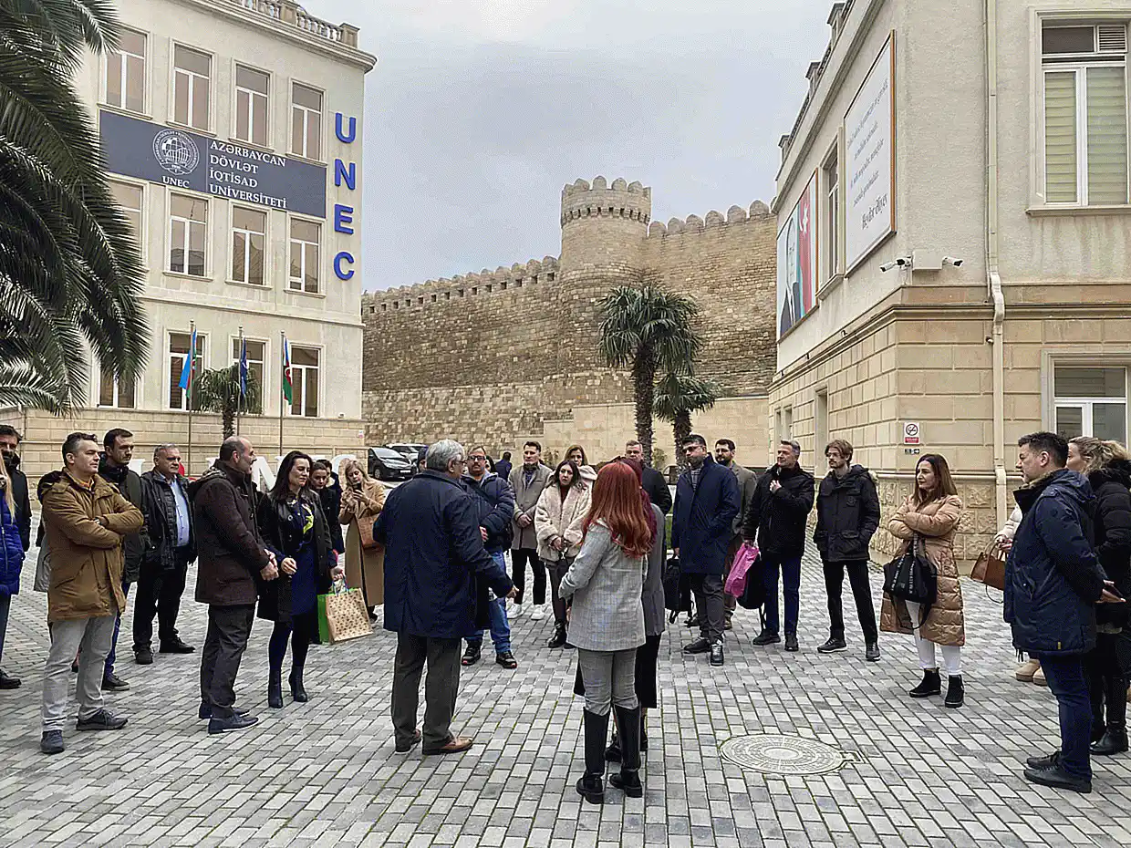 Κατά την επίσκεψη στο UNEC, οι συμμετέχοντες ξεναγήθηκαν στους χώρους του Πανεπιστημίου και συναντήθηκαν με τον Πρύτανη, Καθηγητή κ. Adalat Muradov, ο οποίος επισήμανε τη δεκαετή επιτυχημένη συνεργασία με το Πανεπιστήμιο Δυτικής Μακεδονίας.