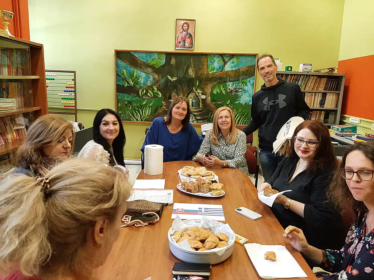 «Οι εκπαιδευτικοί Jana Hepnerova, Jana Vecerova, Dominika Menšíková, Dáša Hitková και Jana Murínová επισκέφτηκαν το σχολείο μας στις 3 Οκτωβρίου 2024 στο πλαίσιο του προγράμματος Job Shadowing (παρακολούθηση εργασίας), για να παρακολουθήσουν μαθήματα και να συνομιλήσουν με τους εκπαιδευτικούς μας για τις ομοιότητες και τις διαφορές μεταξύ των εκπαιδευτικών συστημάτων των δύο χωρών.