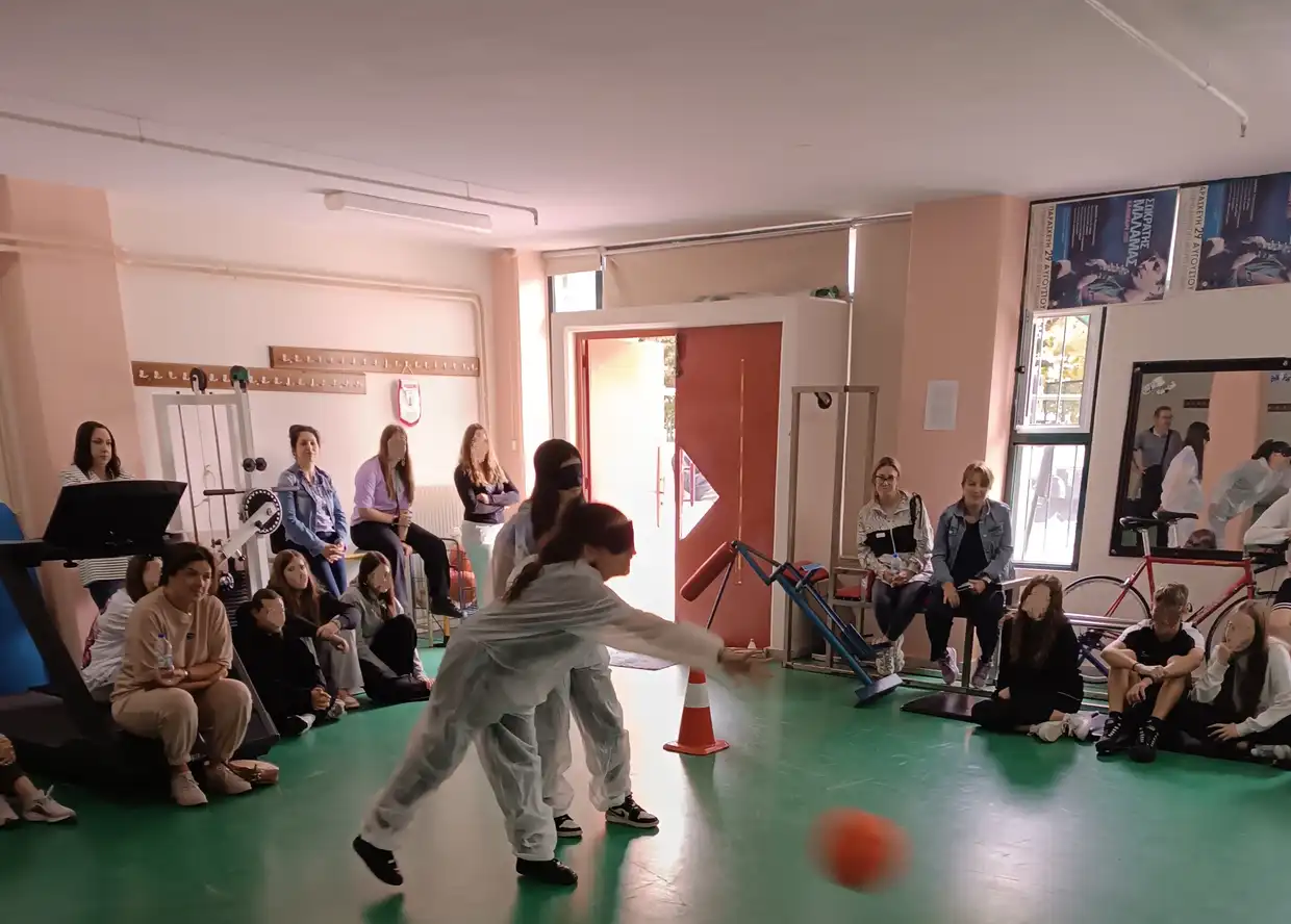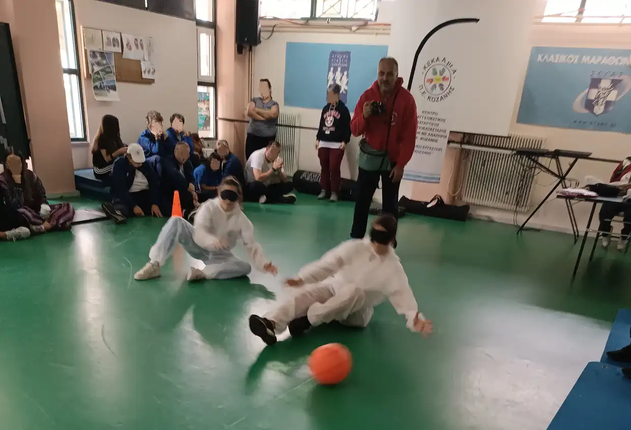 Στο γυμναστήριο του σχολείου μαθητές έμαθαν το goalball, ένα παιχνίδι που απευθύνεται σε τυφλά άτομα. Με την καθοδήγηση του κου Ηλία Γιώτα, προέδρου του συλλόγου τυφλών Δυτικής Μακεδονίας, οι μαθητές έμαθαν και έπαιξαν, με μεγάλο ενθουσιασμό το goalball, φορώντας μάσκες για να μην μπορούν να βλέπουν. Πρέπει να αναφέρουμε ότι η ειδική μπάλα που χρησιμοποιήθηκε ήταν δωρεά προς το σχολείο του μέλους του ΔΣ του Συλλόγου Γονέων και Κηδεμόνων κας Σοφίας Αγραφιώτη.
