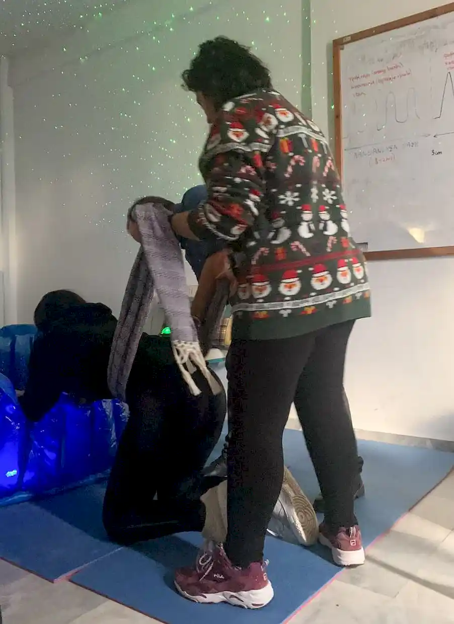 Η προσομοίωση τοκετού που έγινε στη διάρκεια του μαθήματος αφορούσε τις μπάλες τοκετού, την χρήση rebozzo, την επίδειξη εναλλακτικών θέσεων τοκετού.