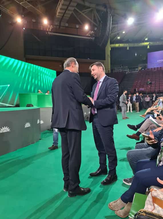 Στη συνέχεια, όταν ο κ. Θεοδωρίδης κατέβηκε από το βήμα, για δύο λεπτά συνομιλεί μαζί του…