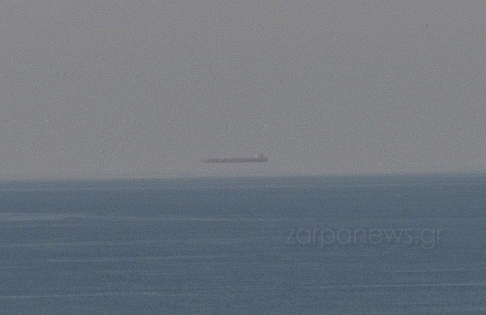 Το φαινόμενο «αιώρησης» πλοίων πάνω από τη θάλασσα ή επιστημονικά Fata Morgana απαθανατίστηκε από ερασιτεχνικό φακό το απόγευμα του Σαββάτου στα Χανιά στην Κρήτη