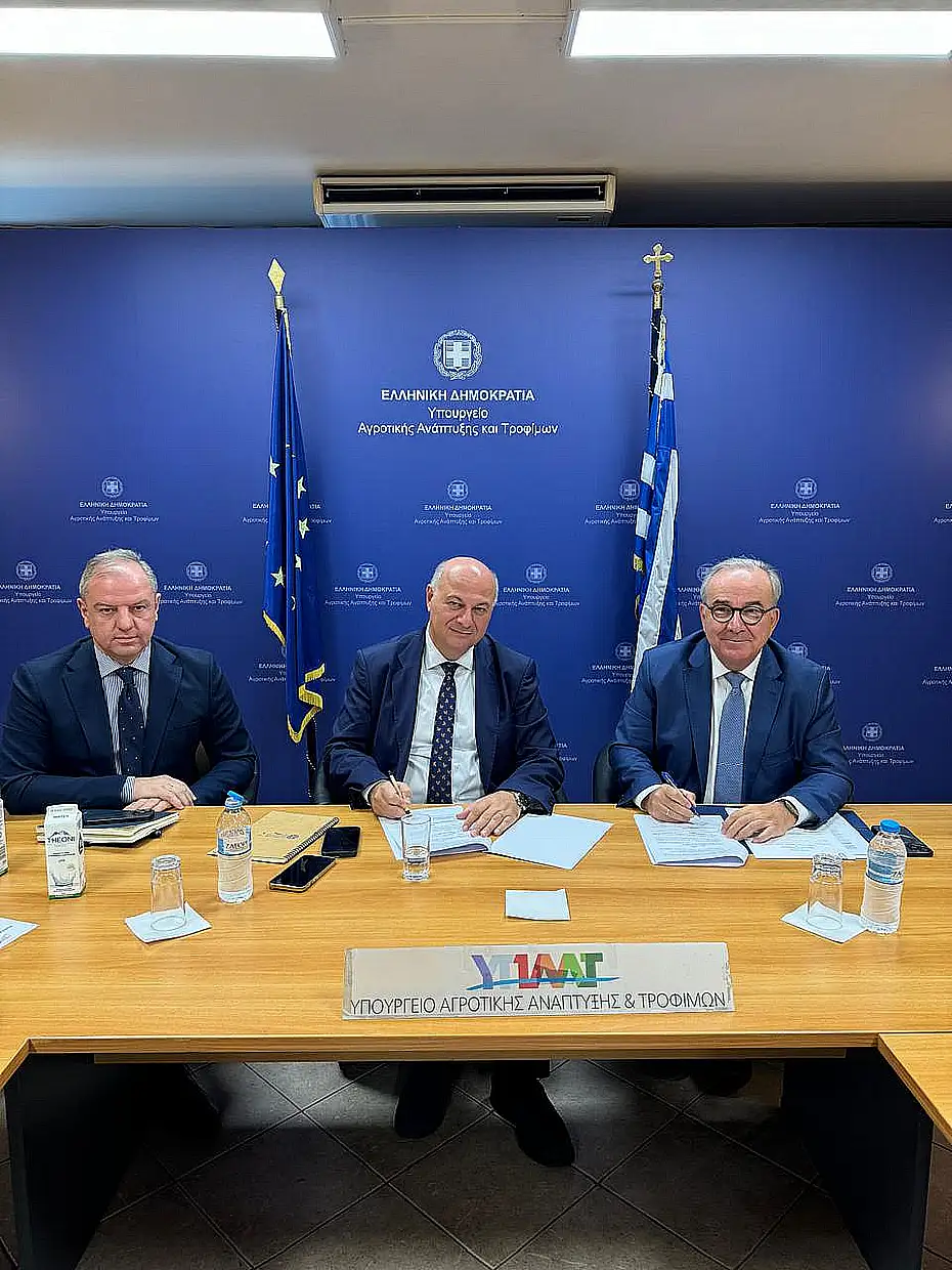 Την ανανέωση του Συμφώνου Συνεργασίας μεταξύ του Υπουργείου Αγροτικής Ανάπτυξης και Τροφίμων και του Υπουργείου Εθνικής Οικονομίας & Οικονομικών, στο πλαίσιο της Δίκαιης Αναπτυξιακής Μετάβασης, υπέγραψαν ο Υπουργός Αγροτικής Ανάπτυξης και Τροφίμων, Κώστας Τσιάρας και ο Αναπληρωτής Υπουργός Εθνικής Οικονομίας και Οικονομικών, αρμόδιος για τη Δίκαιη Αναπτυξιακή Μετάβαση, Νίκος Παπαθανάσης.