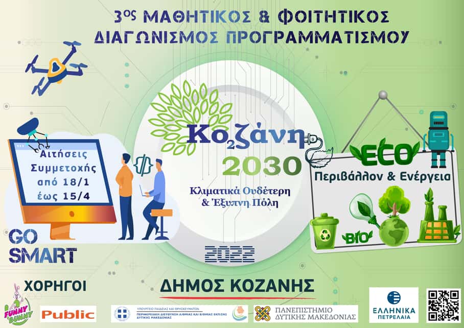 3ος Μαθητικός & Φοιτητικός Διαγωνισμός Προγραμματισμού «Κοζάνη 2030: Κλιματικά ουδέτερη και έξυπνη πόλη» – Άξονας «Περιβάλλον και Ενέργεια»
