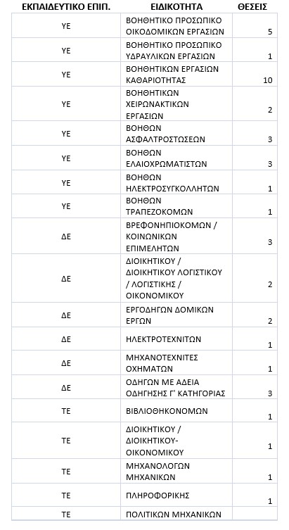 4)Άνεργοι πτυχιούχοι πανεπιστημιακού και τεχνολογικού τομέα, εγγεγραμμένοι στα μητρώα ανέργων του ΟΑΕΔ, για την κάλυψη θέσεων με βάση τα τυπικά τους προσόντα.