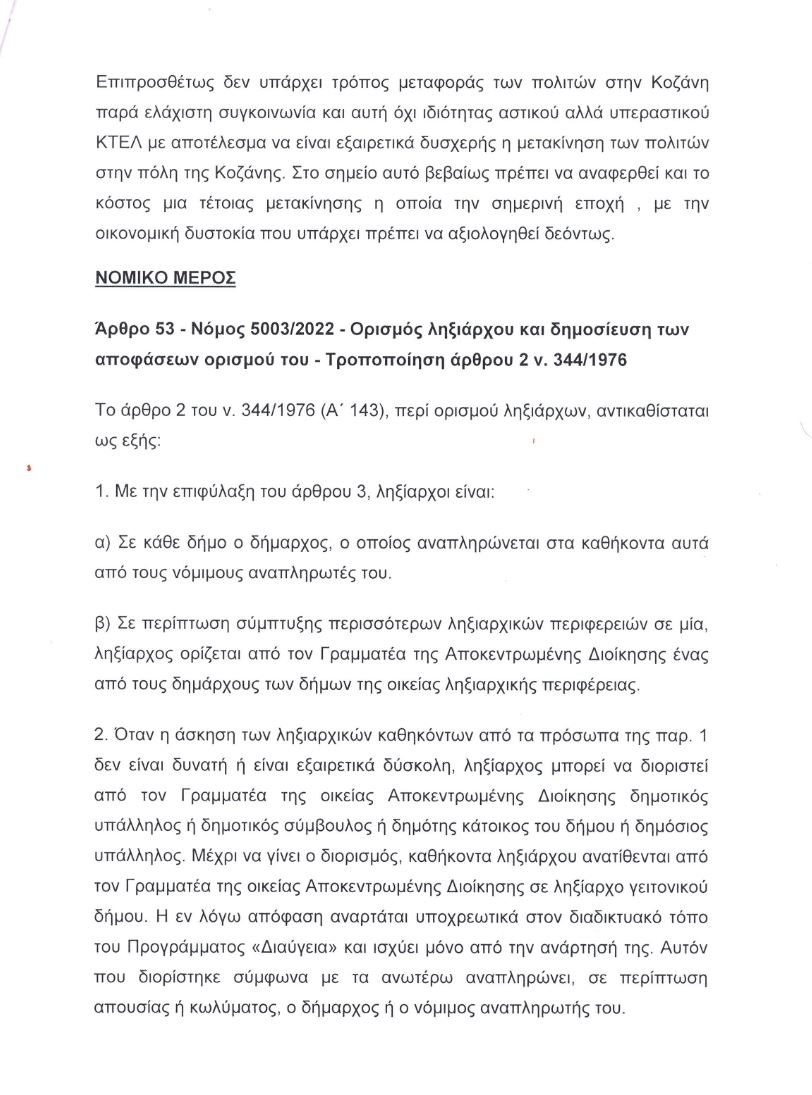 Προς τον Δήμαρχο Κοζάνης κύριο Ιωάννη Κοκκαλιάρη