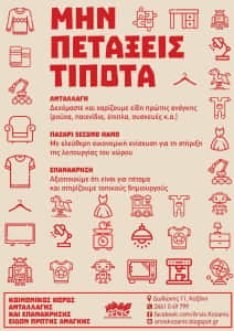 Θυμίζουμε ότι ο Κοινωνικός Χώρος Ανταλλαγής και Επανάχρησης της ΑΡΣΙΣ Κοζάνης, αποτελεί τον μοναδικό χώρο της πόλης, που συγκεντρώνει και χαρίζει ρούχα και είδη πρώτης ανάγκης (κλινοσκεπάσματα, σκεύη, παιχνίδια, βιβλία κ.α.), σε μεμονωμένους ανθρώπους και οικογένειες της ευρύτερης περιοχής μας, σε κοινωνικές δομές, αλλά και όπου καταστεί ανάγκη, όπως μετά από φυσικές καταστροφές κ.α.