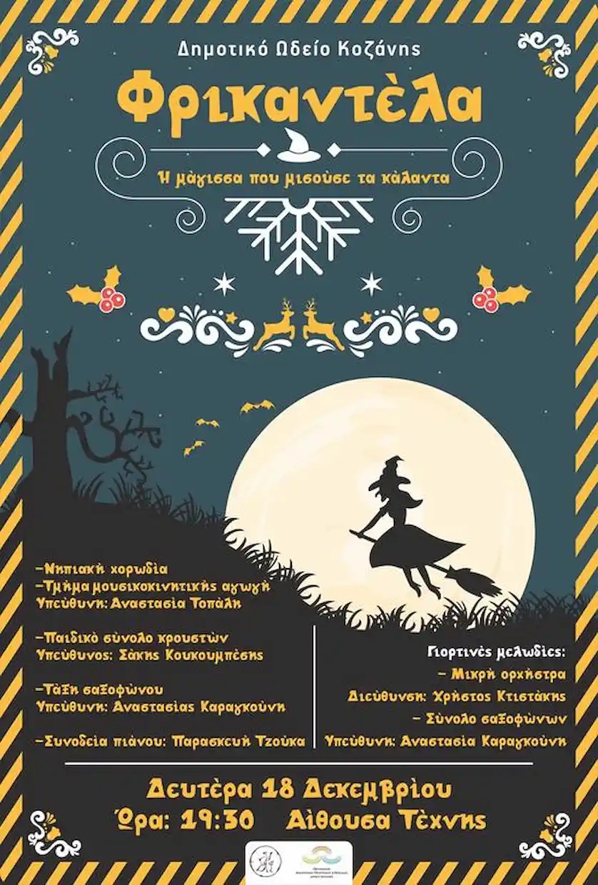 Σας περιμένουμε τη Δευτέρα 18 Δεκεμβρίου, 7:30 μ.μ. στην αίθουσα Τέχνης του Δήμου Κοζάνης για να μας μαγέψει η “Φρικαντέλα”, η μάγισσα που μισούσε τα κάλαντα».