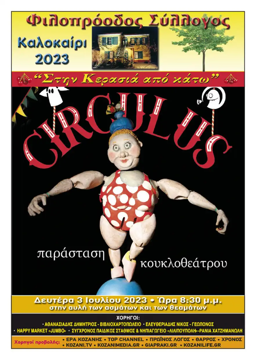 Ο Φιλοπρόοδος Σύλλογος για 28η χρονιά, ετοίμασε την καλοκαιρινή αυλή του, για να προσκαλέσει και να υποδεχτεί πρώτους και καλύτερους τους μικρούς του φίλους, τη Δευτέρα 3 Ιουλίου στις 8.30 το βράδυ, για να παρακολουθήσουν την παράσταση κουκλοθέατρου «CIRCULUS».