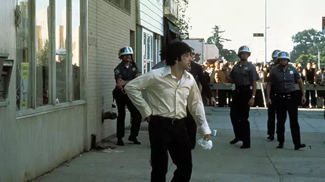 Στη «Σκυλίσια Μέρα» ο εξαγριωμένος Σόνι του  Αλ Πατσίνο μάχεται μόνος απέναντι στην ηθική του νόμου και το λυσσαλέο ενδιαφέρον των media. Ο Λουμέτ συστήνει αρχικά τους χαρακτήρες και τον χώρο δημιουργώντας μία οικεία βάση στον θεατή και στη συνέχεια μεταβάλλει μεθοδικά την πρώτη εντύπωση σε μία απρόσμενη ανάγνωση.