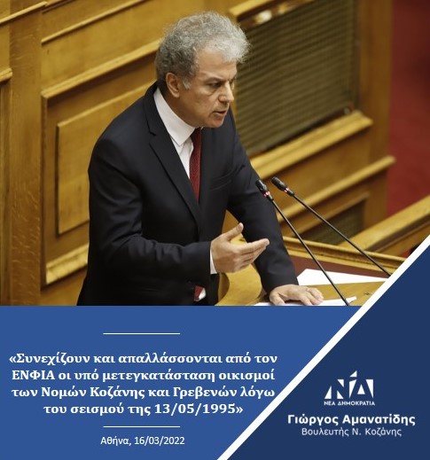 Γιώργος Αμανατίδης: “Συνεχίζουν και απαλλάσσονται από τον ΕΝΦΙΑ οι υπό μετεγκατάσταση οικισμοί των Νομών Κοζάνης και Γρεβενών λόγω του σεισμού της 13/05/1995″