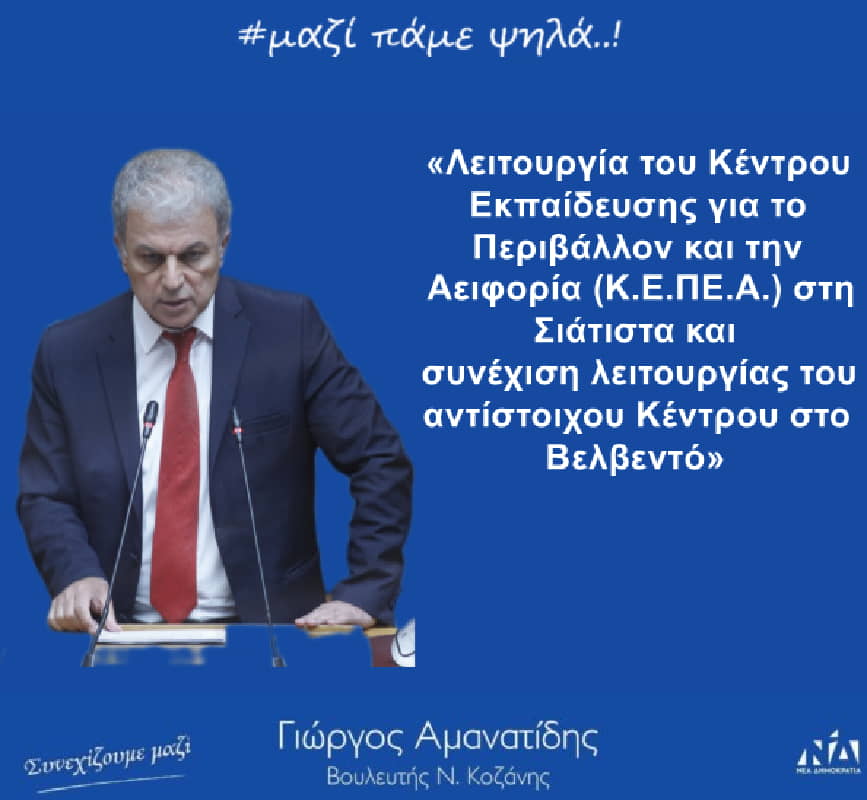 Γιώργος Αμανατίδης: «Λειτουργία του Κέντρου Εκπαίδευσης για το Περιβάλλον και την Αειφορία (Κ.Ε.ΠΕ.Α.) στη Σιάτιστα»