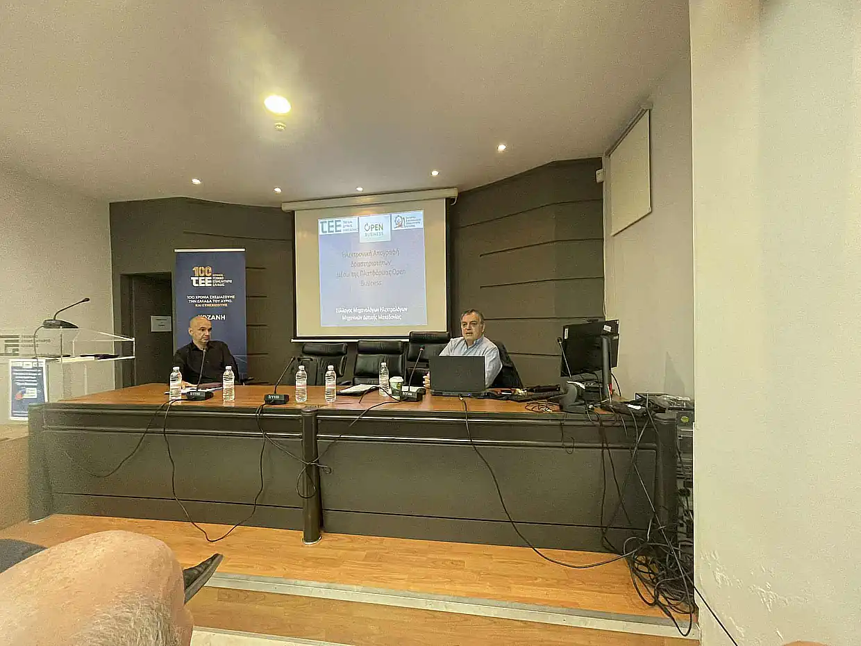 Με εξαιρετικά μεγάλη συμμετοχή μηχανικών, επιχειρηματιών και επαγγελματιών της περιοχής πραγματοποιήθηκε τη Δευτέρα 17 Νοεμβρίου 2025 η ενημερωτική ημερίδα με θέμα: «Ηλεκτρονική Απογραφή Δραστηριοτήτων μέσω της πλατφόρμας Open Business», η οποία συνδιοργανώθηκε από το ΤΕΕ/Τμήμα Δυτικής Μακεδονίας και το Εμποροβιομηχανικό Επιμελητήριο Κοζάνης.