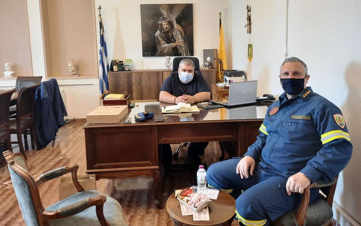 Ο Διοικητής της Σχολής Πυροσβεστών Πτολεμαΐδας, Πύραρχος Αναστάσιος Καρατζάς στον Δήμαρχο Εορδαίας Παναγιώτη Πλακεντά