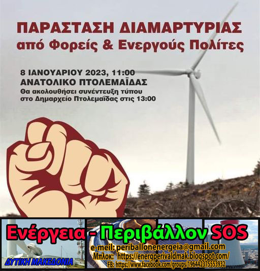 Η ενωτική κίνηση «Ενέργεια – Περιβάλλον SOS Δυτικής Μακεδονίας» στηρίζει και συμμετέχει στην κινητοποίηση φορέων και πολιτών στο Ανατολικό Εορδαίας κατά των ανεμογεννητριών στο Βέρμιο !