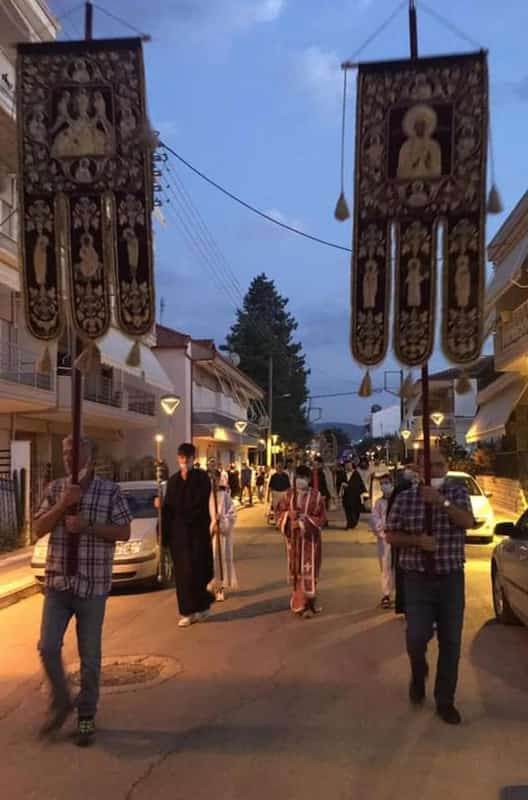 Στον Ιερό Ναό της Μεταμορφώσεως του Σωτήρος στην Πτολεμαΐδα, όπου τελέστηκε Μέγας Πανηγυρικός Εσπερινός από τον Αρχιμανδρίτη π. Αυγουστίνο Αυξωνίδη και έγινε λιτάνευση της εικόνας.