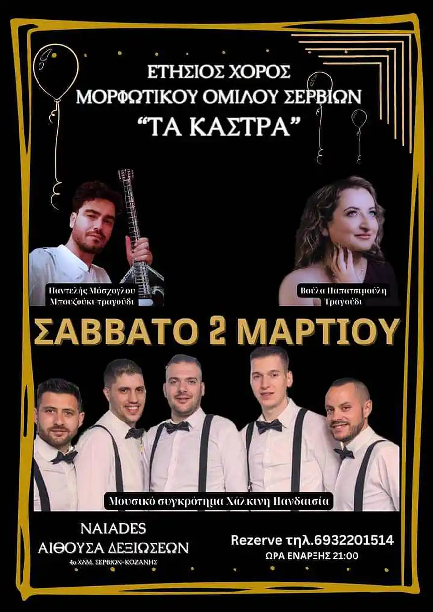 Το Σάββατο, 2 Μαρτίου 2024, στο Κατάστημα «Ναϊάδες» ώρα 9 μ.μ σε μια χαρούμενη φιλική βραδιά με μουσική, τραγούδι και χορό.