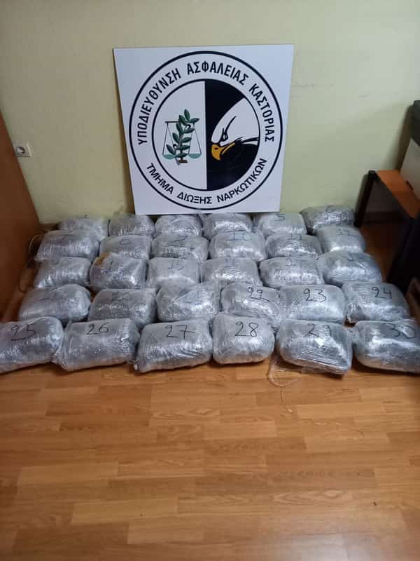 Αναλυτικότερα, στo πλαίσιο συντονισμένης αστυνομικής επιχείρησης για την καταπολέμηση της εισαγωγής και διακίνησης ναρκωτικών ουσιών στη χώρα και κατόπιν κατάλληλης αξιοποίησης στοιχείων από τους προαναφερόμενους αστυνομικούς, εντοπίσθηκε σε περιοχή της Καστοριάς, Ι.Χ.Ε. αυτοκίνητο, με οδηγό τον 59χρονο και σε έλεγχο που πραγματοποιήθηκε, βρέθηκαν -2- ταξιδιωτικοί σάκοι που περιείχαν -30- αυτοσχέδιες συσκευασίες με ακατέργαστη κάνναβη, συνολικού βάρους -33- κιλών και -200- γραμμαρίων.