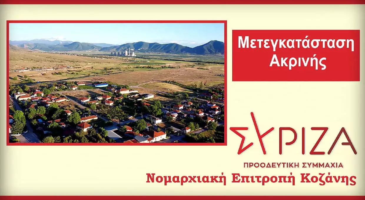 Ο ΣΥΡΙΖΑ-ΠΣ, μέσω των τομεαρχών του αλλά και ως Νομαρχιακή Επιτροπή ΠΕ Κοζάνης, έχει δηλώσει σε όλους τους τόνους ότι η λαϊκή ετυμηγορία των κατοίκων της Ακρινής όπως και η απόφαση του ΣτΕ είναι δεσμευτικές για την πολιτεία και έτσι θα αντιμετωπιστούν από την επόμενη προοδευτική κυβέρνηση.