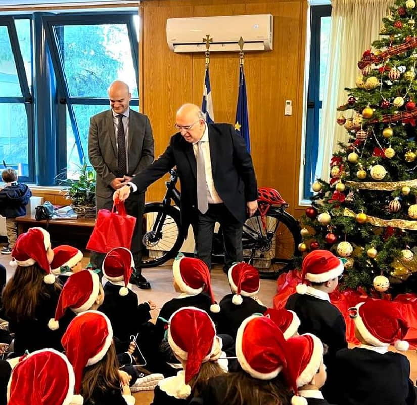 Ο Υφυπουργός Μεταφορών μίλησε στα παιδιά για τη σημασία της ασφαλούς κυκλοφορίας στους δρόμους, προσφέροντάς τους ένα εκπαιδευτικό βιβλίο για τη χρήση του ποδηλάτου και τους ευχήθηκε καλή πρόοδο.